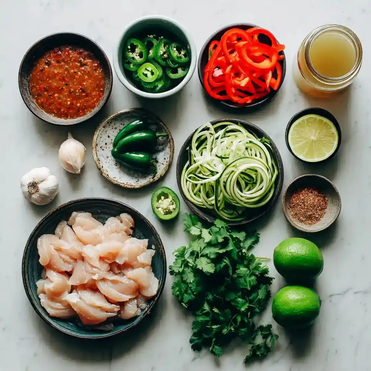 Instead of cooking zucchini noodles in the pot — which makes them soggy — place a handful in each serving bowl. Ladle the hot soup over the top and let the heat soften them naturally. Finish each bowl with a big squeeze of lime.